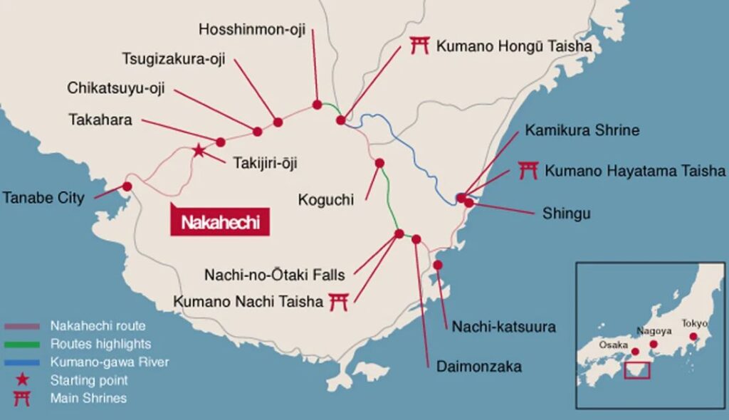 This is the classic and most well-preserved route, connecting Tanabe to the three Grand Shrines. It’s possible to complete this trail in approximately 4 to 7 days, or even shorter if you use buses to skip sections.