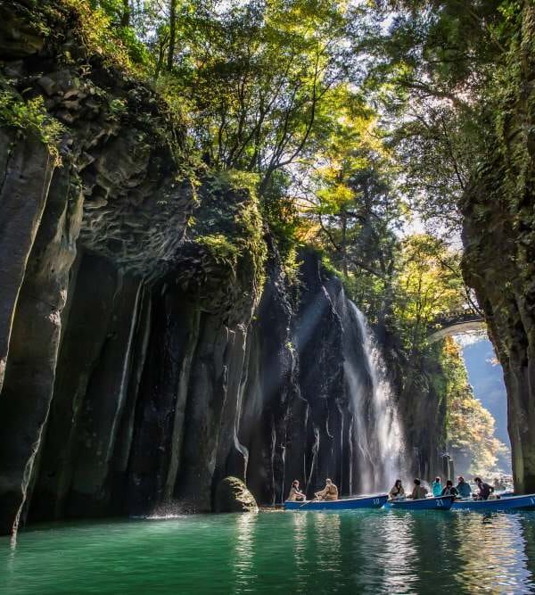 Travel from Kumamoto to Takachiho, a sacred land at the heart of Japanese mythology, long believed to be the setting of ancient legends.