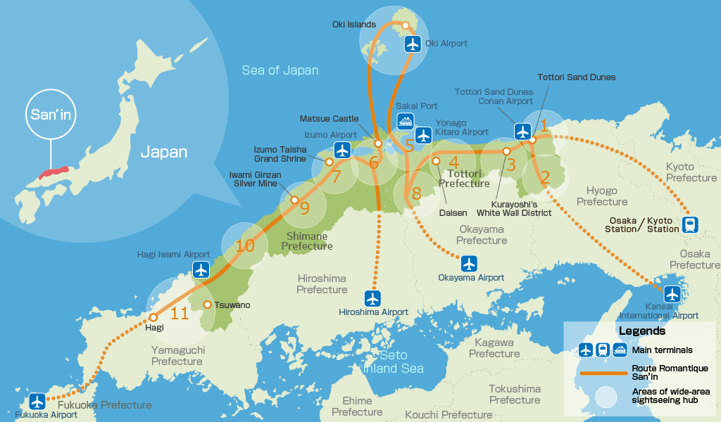 The San’in Region (San’in Chihō) is a culturally rich, less-visited area on the northern coast of Japan’s main island, Honshu, facing the Sea of Japan, primarily comprising Tottori and Shimane Prefectures.