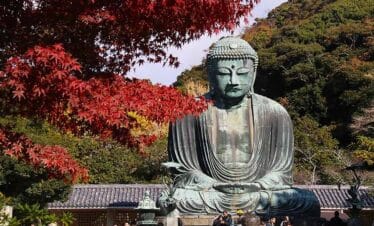 Built in 850 A.D. on top of Kanzan hill, this Tendai-sect Buddhist temple commands a spectacular view of autumn color leaves. Your guide will share details of Chusonji’s lofty past from prominence and power to decline. Among the few remaining sites here is the fabulous Golden Pavilion, completely covered in gold leaf, which is protected from the elements housed inside a larger structure.